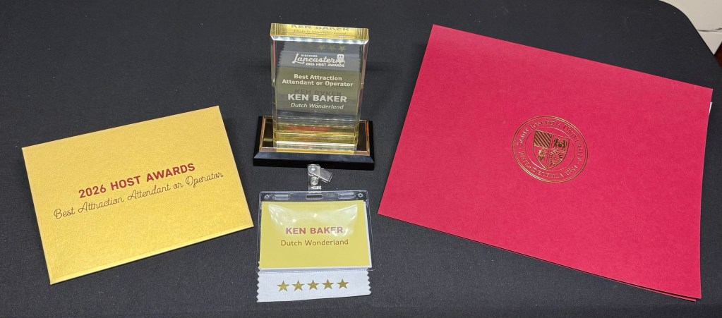 Ken Baker received the 2026 Discover Lancaster Host Award for Best Attraction Attendant/Operator, recognizing his commitment to creating joyful experiences for guests and families across Lancaster County.